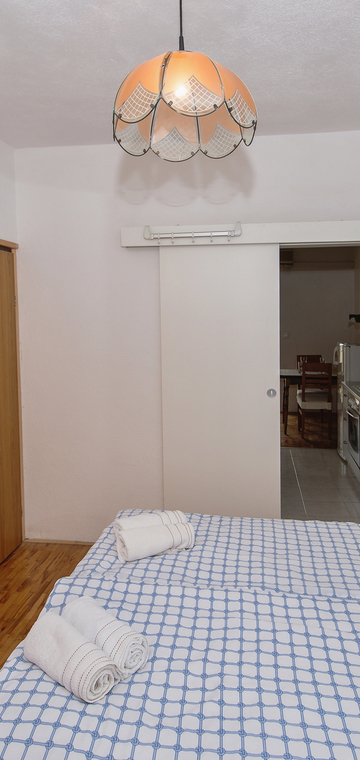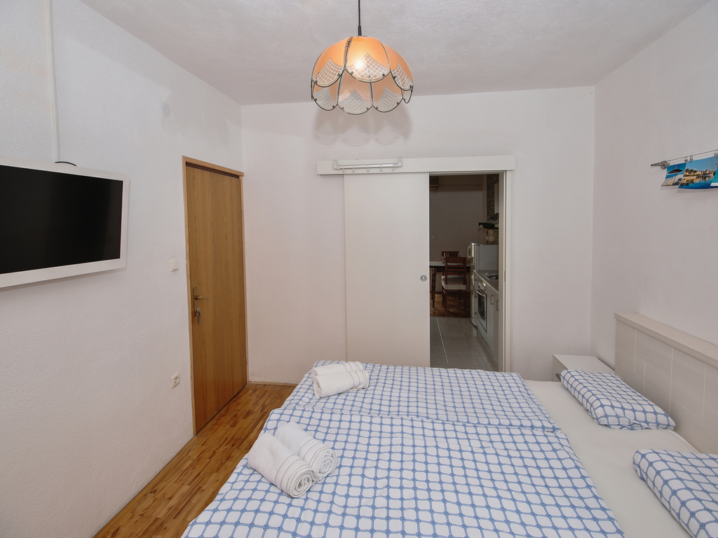 Apartment Mucrum is modern and very clean apartment on excellent location in Makarska. It’s perfect for couples. It has one double-bed, well-equipped kitchen, Wi-Fi, TV, bathroom with a shower, air-conditioner and a parking place in front of the house. Towels and bedclothes are included.